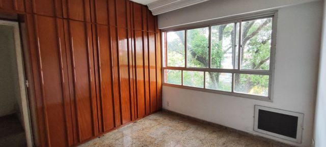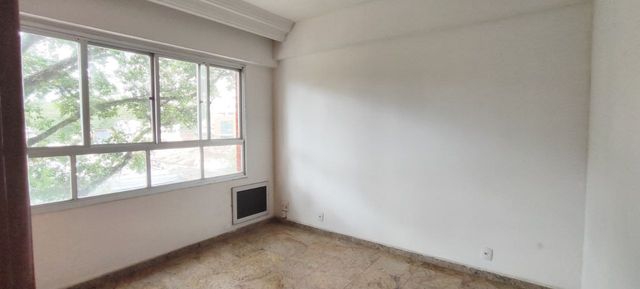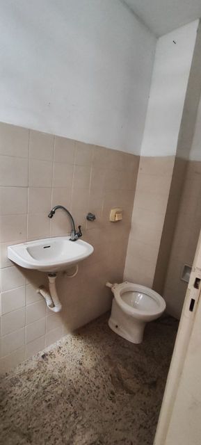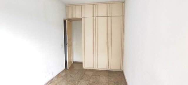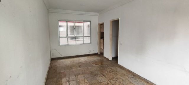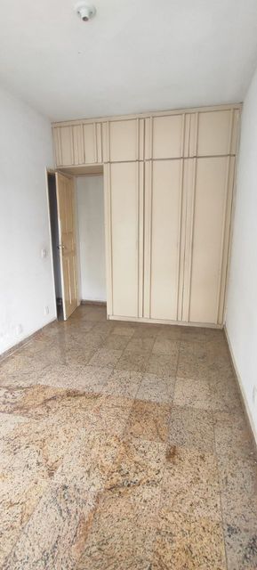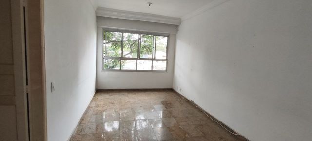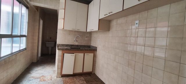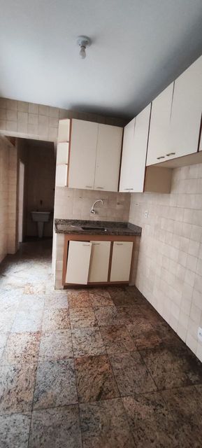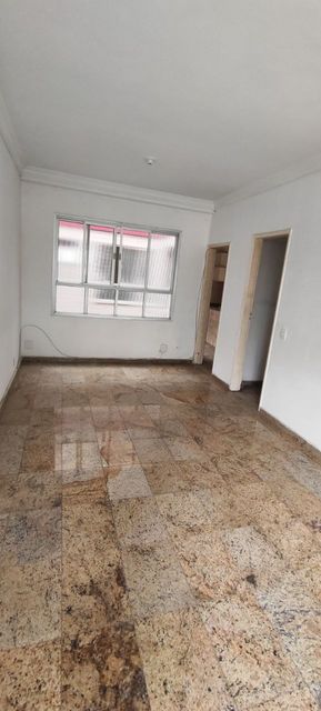 O apartamento com 100 m², piso todo em granito, 2 quartos, sala, cozinha, área de serviço, banheiro de serviço, corredor e banheiro social.